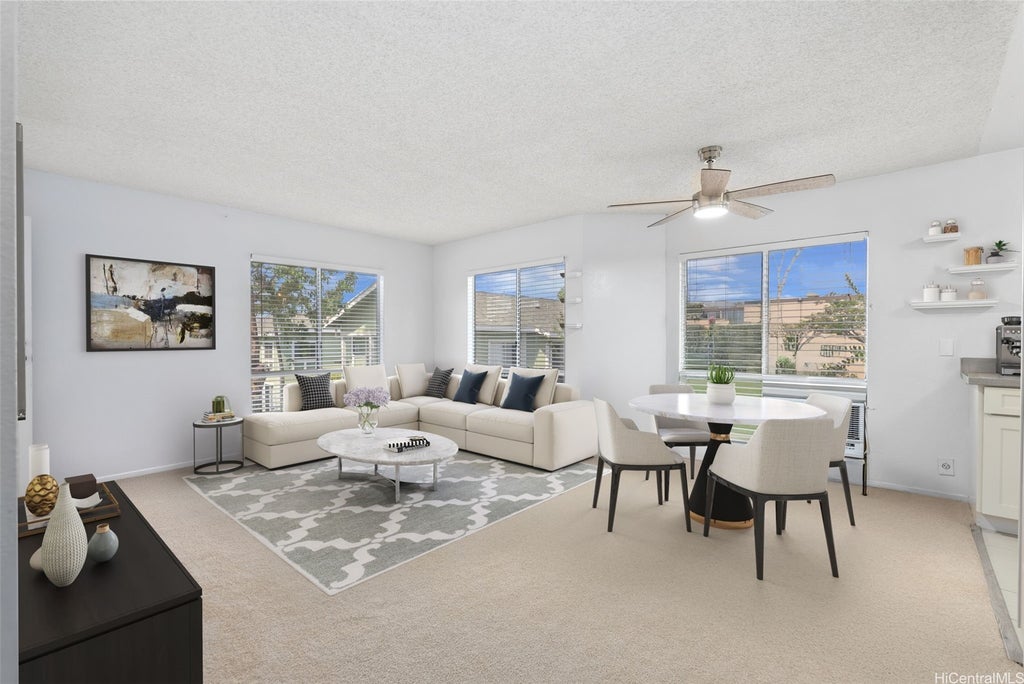 FIRST OPEN HOUSE SUNDAY 09/21 @ 2pm - 5pm!! Welcome home to this stylish 2-bedroom / 1-bath corner end-unit with 2 parking spaces in the heart of Mililani Town! Located in a well-maintained complex with LOW MAINTENANCE FEES, this move-in-ready home features a renovated kitchen with white shaker cabinets, upgraded countertops, and modern ceramic tile flooring. Large windows bring in natural light and cool Mililani breezes, creating a bright and airy vibe. Conveniently close to shopping, dining, schools, golf courses, and Mililani's recreation centers with easy H-2 access for quick commutes to Honolulu, Pearl City, JBPHH, Wheeler, and Schofield. Don't miss this Mililani gem!