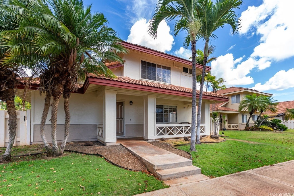 Welcome to the highly desirable Aeloa neighborhood in Kapolei! This spacious 3-bedroom, 2.5-bath residence offers 1,508 sq ft of interior living on an oversized 6,179 sq ft lot—larger than many homes in the community. The open living area boasts vaulted ceilings, while the primary suite features its own ensuite bathroom. Renovated bathrooms, new paint, and carpet make the home move-in ready. Stay cool year-round with split AC throughout and save on utilities with 27 owned photovoltaic panels. A 2-car garage plus extended driveway provides parking for 4+ additional cars, a rare find in Kapolei. The gated yard includes a garden and a covered patio—perfect for pets, kids, and weekend BBQs. Nestled in a quiet cul-de-sac within a peaceful neighborhood, yet just minutes from all the shopping, dining, and entertainment Kapolei has to offer. Best of all—NO MAINTENANCE FEES only $53/mo association dues, a rare find in Kapolei and Ewa. Your association dues allow you access to all the amazing amenities that the Villages of Kapolei provides. With more space inside and out, this Aeloa gem blends comfort, function, and location.