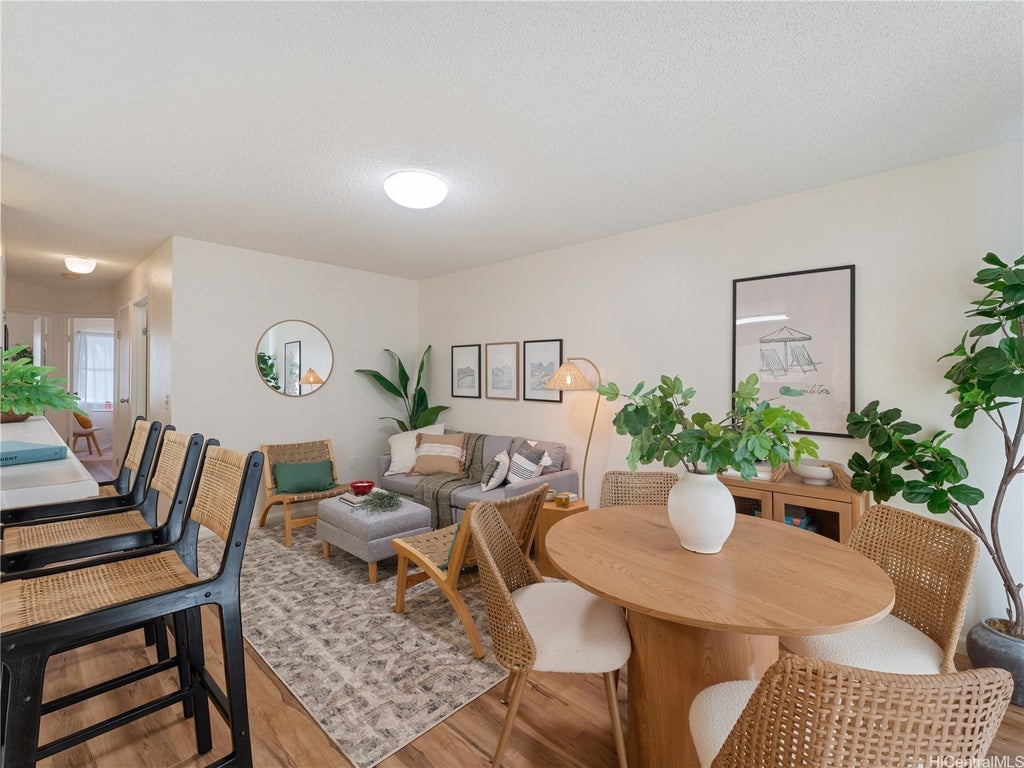 Welcome to Mililani Mauka living! This move-in ready 2-bed, 2-bath home features brand-new vinyl plank flooring and fresh interior paint throughout. Enjoy the convenience of 2 parking stalls, in-unit washer/dryer, and a quiet outdoor lanai perfect for relaxing after a long day. With a functional layout and tranquil setting, this property is an ideal choice for first-time homebuyers or those seeking a low-maintenance lifestyle in a desirable community.