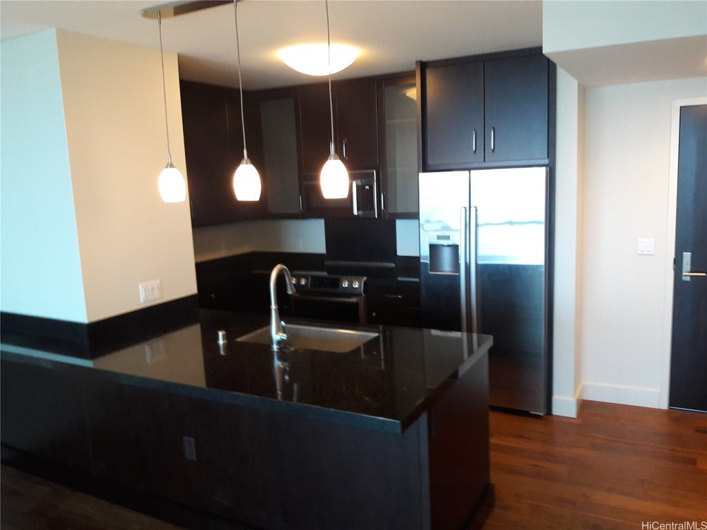 Centrally located, secured, contemporary residence located near beaches, Ala Moana Center, Ward/Kakaako Business District. Panoramic Ocean & Sunset views. Elegant interior, Gourmet Kitchen, Central AC. Two full size covered parking in a secured garage with storage. Superb Amenities: includes: Infinity Pool, Movie theater, Fitness Center, multiple BBQ areas, Elec car charging stations & more. 2 guest suite available for guest. Re piping for this unit has been completed.