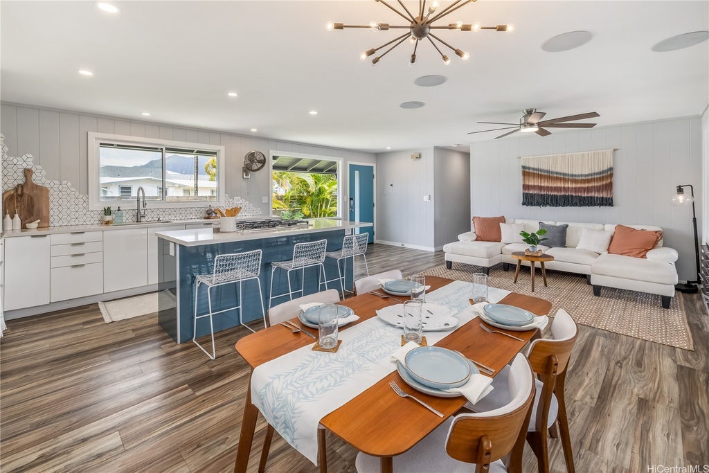 Kailua Living Your Way—Now at a New Price | 3BD/2BA + 1BD/1BA Wake up to peaceful mornings, serene mountain views, and the kind of turnkey flexibility every buyer is chasing. Tucked into a peaceful Enchanted Lake cul-de-sac on a desirable corner lot, Nanawale delivers modern island style, clean lines, effortless flow, and a layout that works hard for you. The 3BD/2BA main home shines with split AC in every bedroom and a custom blue-and-white chef’s kitchen—gas range, double ovens, built-in refrigerator, plus a coffee nook—opening seamlessly to the living room and a covered lanai perfect for sunset dinners and weekend hangs. The private-entry 1BD/1BA suite with wet bar? That’s the difference-maker: multi-gen living, long-stay guests, or explore income potential. Fresh tilework, tankless water heater, smart features, and lush landscaping make this home as turnkey as it is stylish. Play in the grassy front yard, unwind on the back patio, and enjoy life just minutes from Kailua Beach, Whole Foods, top schools, and the Pali. This is Kailua living, your way.