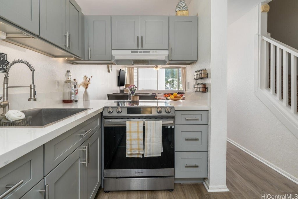 PRICE IMPROVEMENT! Motivated Seller! Monthly loan payment BELOW $1800K for eligible VA Buyers Only - VA Assumable - 2.75%!!!*** Welcome to the Nani Koolau units, surrounded by breathtaking views of the Ko'olau Mountains on the tranquil Windward side of Oahu. This charming 2-bedroom, 1.5-bath, pet friendly unit, offers a two-level layout with the kitchen, living room, and dining area on the lower level and bathrooms and bedrooms upstairs. Kitchen boosts updated countertops and kitchen cabinets. The vinyl planks throughout the lower level makes this unit easy to maintain. Close proximity to grocery stores, Windward Mall, scenic beaches, hiking trails, island attractions, and easy access to Marine Corps Base Kaneohe make this a very highly desirable unit. Don’t miss your chance to own a piece of paradise! Schedule a viewing today and experience the perfect blend of natural beauty, comfort, and convenience.