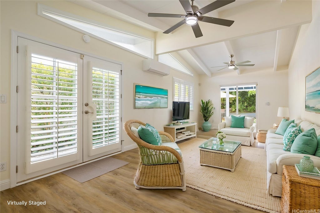 Enchanting Single-Family Home in Kailua is a rare find. This 3 bedroom, 2 bath home nestled in the Kukanono neighborhood is perfect for a family or an investor and currently the only listing in this area. Upon entering, you are greeted by an inviting atmosphere with vaulted ceilings, the kitchen, dining and living room are connected in this space. The heart of the home! Recently remodeled with new vinyl floors, paint and stainless steel appliances. Including a Brand new roof, down to it's studs. Take in the natural breezes with ceiling fans throughout or use the split A/C, located in every room for those summer days ahead of us. The tropical yard is wonderful for dining al fresco or festive social gatherings. A single floor layout ensures easy accessibility throughout the home. Lots of extra storage space. Duplex, Attached by new roof and one common wall. The allure of this home extends beyond its borders. It is conveniently situated close to restaurants, grocery stores and schools. This community friendly neighborhood is highly desirable. Don't miss your chance to own 1 of Kukanono's gems! Schedule a private showing today & experience the comfort + tranquility of owning this home.