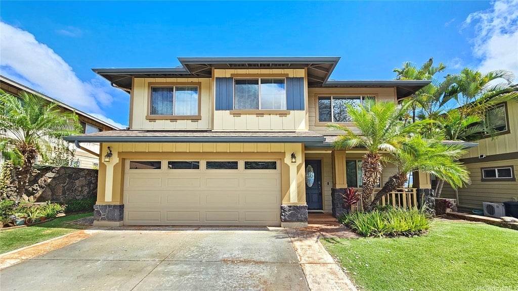 Experience elevated island living in this stunning Wai Kaloi residence, perfectly positioned at the serene edge of Makakilo. This beautifully maintained 4-bed, 2.5-bath home features high ceilings, abundant natural light, and a functional layout. Enjoy luxury vinyl flooring downstairs, plush carpet upstairs, and freshly painted interiors. The kitchen boasts Corian counters, a center island, and all-new stainless steel appliances, flowing seamlessly into spacious dining and living areas — ideal for entertaining. Step out to a covered lanai with mountain to Honolulu and Diamond Head views and no rear neighbors for added privacy. The landscaped backyard includes mature tropical plants like Bird of Paradise, Heliconia, and Plumeria, plus an automatic sprinkler system. Located near schools, shopping, dining, and theaters — a peaceful retreat in Oahu’s growing “Second City.” This home must be seen to truly appreciate all it has to offer.