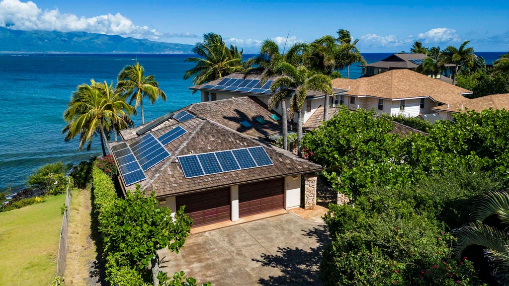This oceanfront home is situated in an unsurpassed location with direct access to the blue Pacific! Experience tropical elegance in this private, gated, cul-de-sac setting. With 3,881 sf of living area, this 3-bedoom, 4-bath residence offers relaxed indoor-outdoor living with vaulted ceilings & floor-to-ceiling sliders to let the soft ocean breezes & magnificent views in. Enter via the arched, vine-covered entryway & notice the quality construction & use of natural materials. The spacious, open floor-plan features a great room with view seating, dining room, sit-down bar & chef's kitchen with floors & cabinets of rich, polished wood. Bedroom suites are ample, carpeted, with ensuite bathrooms of stone & tile, plus a flex room for exercise, office or den. The two-level home has covered lanais ideal for entertaining, rooftop photovoltaic panels, a dual garage & a manicured yard. Located right on Kuau Bay, close to the famed Mama's Fish House & the world's best windsurfing, foiling & fishing at Ho'okipa Beach Park, this is an incredibly rare opportunity!