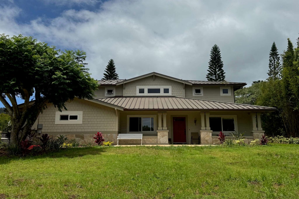 Nestled along the 5th hole of the retired Koele Golf Course on the quiet island of Lanai, this two-story residence showcases luxury living with breathtaking vistas. Upon entering, one is greeted by an executive home office featuring wood built-ins and granite accents and serves as a tranquil space. As you continue the open floor plan seamlessly integrates the family room, kitchen, and media room, creating a bright and inviting space. French doors and windows frame views of the professionally landscaped backyard, complete with a trellis-covered patio that beckons for moments of relaxation. Upstairs the large master bedroom offers a sanctuary with its outlook onto the golf course and the majestic mountains along Munro Trail, creating a serene backdrop for moonrises and stargazing. Two guest rooms, strategically positioned at the opposite end, offer privacy and comfort to guests. This property is not just a home; it's a lifestyle, offering a unique blend of elegance, natural beauty, and access to the island's finest amenities. As an added bonus, 180 Kauna’oa Drive is eligible for exclusive membership in the Island Club. This membership provides unrestricted access to both Four Seasons Hotels on Lana’i, complimentary golf at the Manele Golf Course, and free use of the tennis center. Immediate family members, including parents, children, and grandchildren, are included. Island Club members are treated as Four Seasons guests, enjoying full hotel and guest privileges. The staging items such as furniture, artwork, plants and the like portrayed in these photos and/or videos have been created by computer generated image (“CGI”) technology. All virtual CGI staging items are used for illustration purposes only. No real, actual or physical staging items are included in this sale.