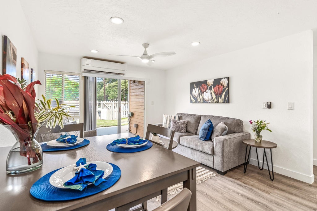 Stunning Ground floor unit at Kihei Villages. This front row unit has been updated throughout and features some ocean views as well as a front AND back yard. Unit 37-103 has vinyl flooring throughout, a split system AC, fresh paint and all new EVERYTHING. This full two bedroom and two baths is stylishly furnished with brand new furnishings and is offered turn key. Kihei Villages is a residential community popular for its pet friendly atmosphere and is minutes to over five miles of sandy beach. Easy access to Kihei and Wailea as well as Kahului and the airport.