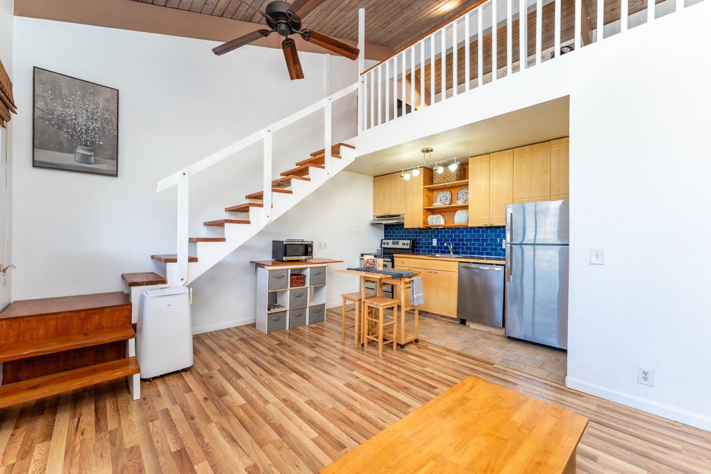 Huge Price REDUCTION! Motivated Seller! All reasonable offers welcome. Experience breathtaking ocean views from this top-floor unit at Koa Kai, a low-density complex with only 18 units. Unit 18 is a 1-bedroom, 1-bathroom home with a loft, located on the third floor. This pet-friendly complex offers a serene escape, yet remains conveniently close to all the island's amenities. Start your day with coffee or unwind with a cocktail on your private lanai, where you can soak in the daily sunset. The bedroom is equipped with portable AC and ample storage, while the bathroom features a tub/shower combo. The kitchen has stainless steel appliances and a beautiful wood countertop, perfect for culinary enthusiasts. The open and airy loft can be used as a guest bedroom or office, and it includes a storage room with a workbench. The unit has been meticulously updated, including recent paint, new laminate flooring in the loft, and countertop in the kitchen. A washer and dryer are conveniently located in the unit. Offered fully furnished, Unit 18 is truly move-in ready. Koa Kai features a pool, hot tub, and BBQ area, providing the perfect setting for relaxation. Situated at the top of Walaka Street, this peaceful complex is just a short walk to Charley Young Beach, Cove Park for surfing, and Kalama Park for various sports activities. You'll also find nearby restaurants, food trucks, and shops, making Koa Kai ideal for embracing the island lifestyle. Don't miss the chance to see this remarkable unit and its stunning views. Contact your favorite Realtor to schedule a showing today!
