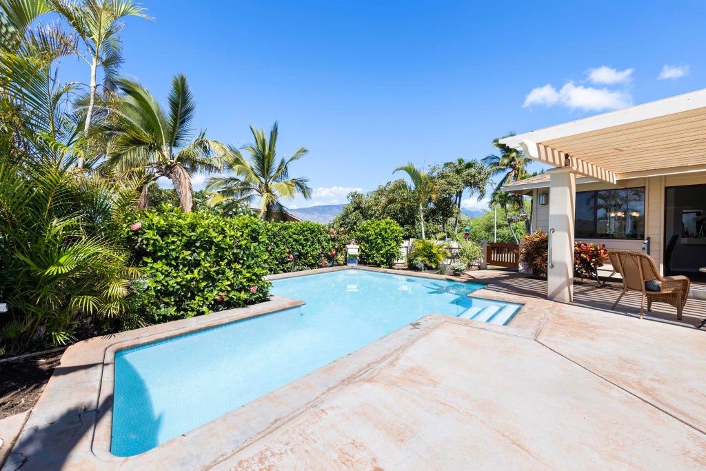 Welcome to 250 Wainohia Street, a gorgeous custom-built residence in Waiakoa Kai Estates community in North Kihei. This 1,446 square foot, 3-bedroom, 2-bathroom has been lovingly maintained inside and out and boasts ocean and mountain views from the first and second levels, allowing you to enjoy beautiful sunrises and sunsets. Inside, the home has airy and light-filled spaces featuring custom touches like vaulted ceilings in the kitchen and living room, a picture window with a panoramic ocean view, and built-in storage nooks throughout. The first floor boasts a spacious eat-in kitchen with generous counter and cabinet space and a seamless passthrough to the living room. There is also a master bathroom and bedroom with direct access to the lanai. Upstairs, two additional bedrooms offer expansive ocean and mountain views, complemented by a second full bath. The allure extends outdoors, where a trellis-covered lanai leads to a stunning in-ground pool with step entry and a built-in gas barbecue grill. This backyard oasis is perfect for relaxing, recreating, and entertaining. The two-car garage is equipped with ample storage space and a built-in workbench, ensuring both functionality and convenience. 250 Wainohia Street delivers indoor-outdoor comforts in a prime corner location, with easy access to beaches, shopping, and essential services. Don’t miss this extraordinary opportunity to call this charming Maui residence your new home.