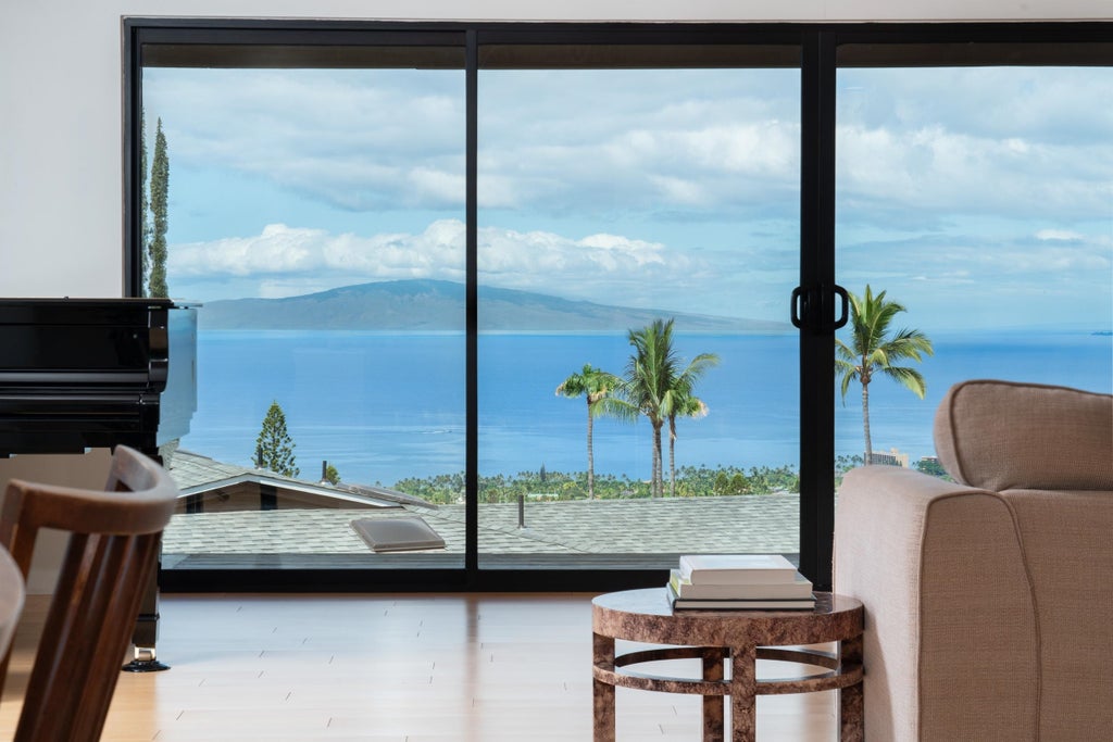 Breathtaking panoramic ocean views! Perched at the top of the prestigious Maui Meadows neighborhood, this thoughtfully remodeled classic cedar home experiences year round sunsets in the unobstructed view plane spanning from Molokini Crater to the West Maui mountains. Its new custom kitchen opens to the spacious living area and wrap around lanai for a seamless indoor-outdoor flow. Large windows invite in an abundance of natural light, while central air conditioning keeps the residence cool on those warmer South Maui days. The primary suite features a stunning spa bathroom with a modern soaking tub. Additional bedrooms downstairs are accessible via an interior staircase or a separate outside entrance. In addition to smart home features throughout the home, there’s also an electric vehicle charger in the covered parking structure. Mature mango, banana, papaya, and pomegranate trees produce bountiful fresh fruit, and the remainder of the large lot enjoys low-maintenance and water conscious landscaping. Plenty of space for both a detached cottage and pool. Don’t miss out on this exceptional offering!