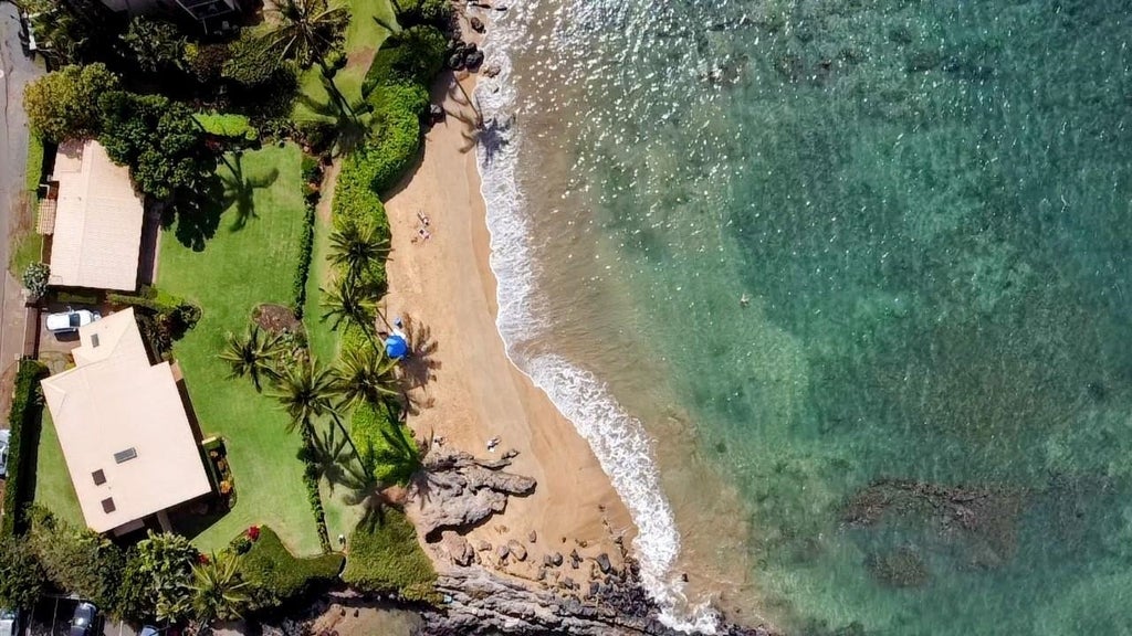 This spectacular Maui beachfront property sits on Maui's South Shore. The Cove has a beachfront of 165 feet and includes a main home and separate ohana. Built in 1996, the main house has two bedrooms and two full ensuite bathrooms on each side of the home. The ohana was originally constructed in 1960 and serves as a professionally operated grandfathered vacation rental, one of only a handful available in South Maui. The spacious living area and kitchen enjoy tons of natural light with sliding doors that open to the beach. Stroll down to Kalama Park, visit one of the surf schools, walk to local dining, or explore the tidepools and watch for whales when in season. This world renown location has year-round beachfront sunsets and convenient access to one of Maui's best ocean playgrounds.
