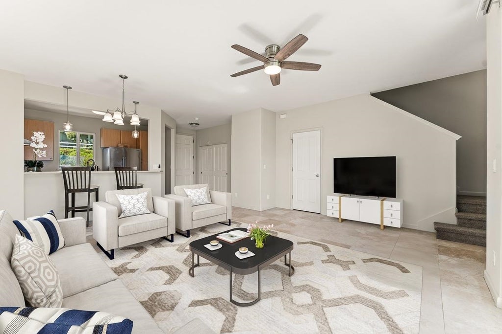 Iliahi at Kehalani is a highly desired and well maintained planned community development that is centrally located in the heart of Maui. Unit #3D is a highly sought-after end unit providing an abundance of natural lighting on three sides thereby reducing the need for artificial lighting and maximizes energy efficiency. This unit also offers unobstructed, panoramic mountain and ocean views from every room. This freshly renovated 3-bedroom, 2.5-bathroom townhome presents a calming interior paint palette throughout, upgraded Kohler collections, new appliances, upgraded ceiling fan lights with color temperature changing capability, and elegant light fixtures. Additional upgrades include new carpeting, new porcelain tile bathroom flooring, and natural stone flooring throughout the first floor. Each bedroom features storage or walk-in closets. Additional storage includes an upstairs linen closet, first floor interior storage room, and a personal exterior storage room . The natural stone flooring downstairs ensures a cool and comfortable year-around living environment coupled with a Mitsubishi split AC system. Immediately outside this unit there is a spacious covered lanai with natural stone flooring and a common lawn area offering ample space for gatherings and relaxation. Included with this townhome are 2 deeded parking stalls (19 & 20) that are steps away from the front door. Don't miss out on this opportunity, and schedule your appointment for a showing today! (Some photos are virtually staged)