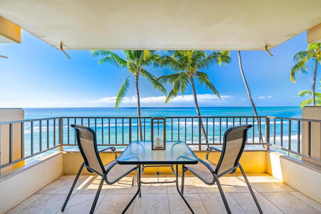 This is more than just a condo on Maui; it’s both a unique lifestyle offering and a one-of-a-kind vacation rental opportunity. When you step into paradise that is Unit 301, you will experience a condo like none other on Maui! Positioned perfectly on the private third-floor corner unit in the heart of Paki Maui, this condo boasts sweeping, unobstructed, and up close ocean views. Imagine sleeping and waking up to the sound of waves just outside your window and enjoying golden sunsets from the comfort of your two massive private lanais. Renovated in 2020, this two-bedroom retreat exudes quality craftmanship and attention to detail. Stunning bamboo flooring adds warmth, while sleek stainless steel appliances and shimmering granite countertops offer the perfect blend of elegance and functionality. With a versatile layout that includes a lock-off studio unit with murphy bed where you’ll have the flexibility to host guests or generate rental income with the option of keeping your main suite and office completely private and to yourself. Enjoy the comfort of a spacious study area with exceptional built-in wood cabinets and desks. In the living room you can pull down the impressively sized Murphey bed and utilize it as a short-term vacation rental for extra cash flow as a lock off keeping your primary bedroom and study all to yourself. And thanks to the custom one-of-a-kind sliding mirrors in the bathroom those breathtaking ocean views can even be seen from inside the primary bathroom and shower - a fantastic well thought out aesthetic that is one of many in this unique corner unit. Whether you're taking a shower or brushing your teeth in the morning, the views of the deep blue Pacific with whales and dolphions are only a glimpse away from almost every corner of this 944 liv sq ft unit. You must see it to believe it! And I promise - you'll be blown away. Paki Maui boasts resort-style amenities, including an oceanfront pool, spa, and barbecue facilities, along with direct access to swimming and snorkeling. Nestled in the heart of Honokowai town, Paki Maui is conveniently located within walking distance to shops, restaurants, the farmer's market, and just a quick stroll south to the esteemed Kaanapali beach through Honoaopiilani Park. Don’t miss the chance to make this beachfront sanctuary your slice of home.