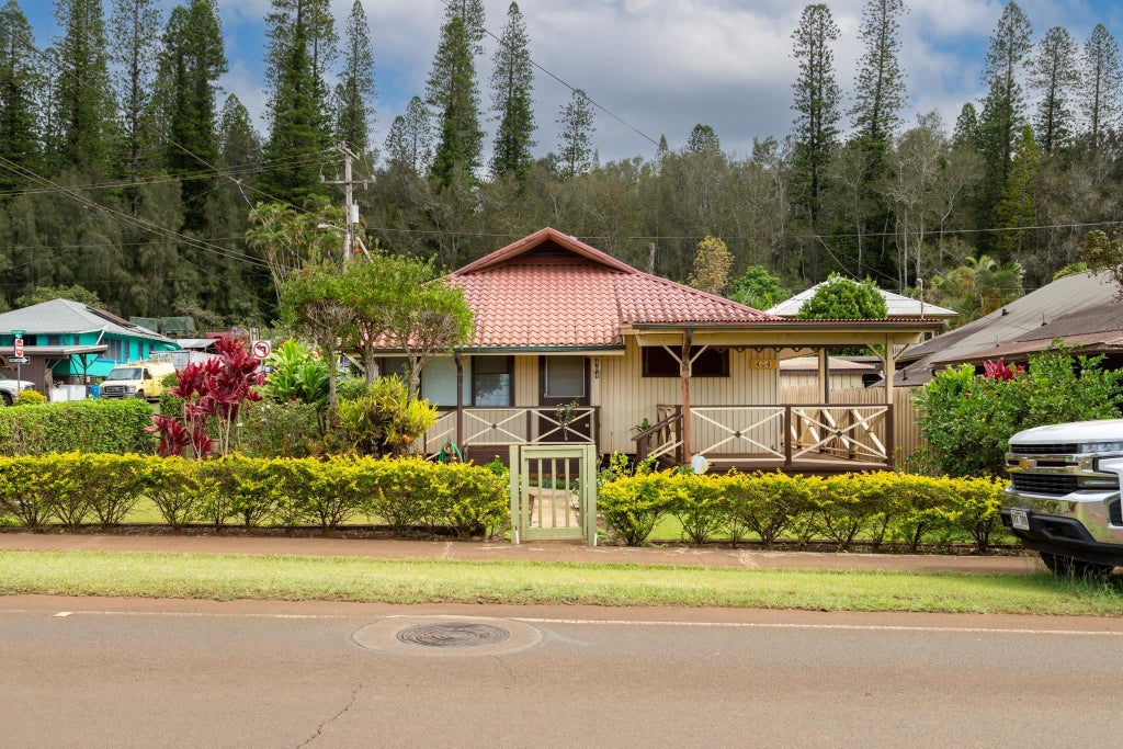 Charming Plantation style home near the center of Lanai City. House is listed as a 3 bedroom 2 bath home; however, the 3rd bedroom has been converted to a separate living space with its own entrance. Former owner (also known as the doughnut lady) was an excellent cook and the kitchen is set up for "major cooking." Solar panels provide a great savings to owner.