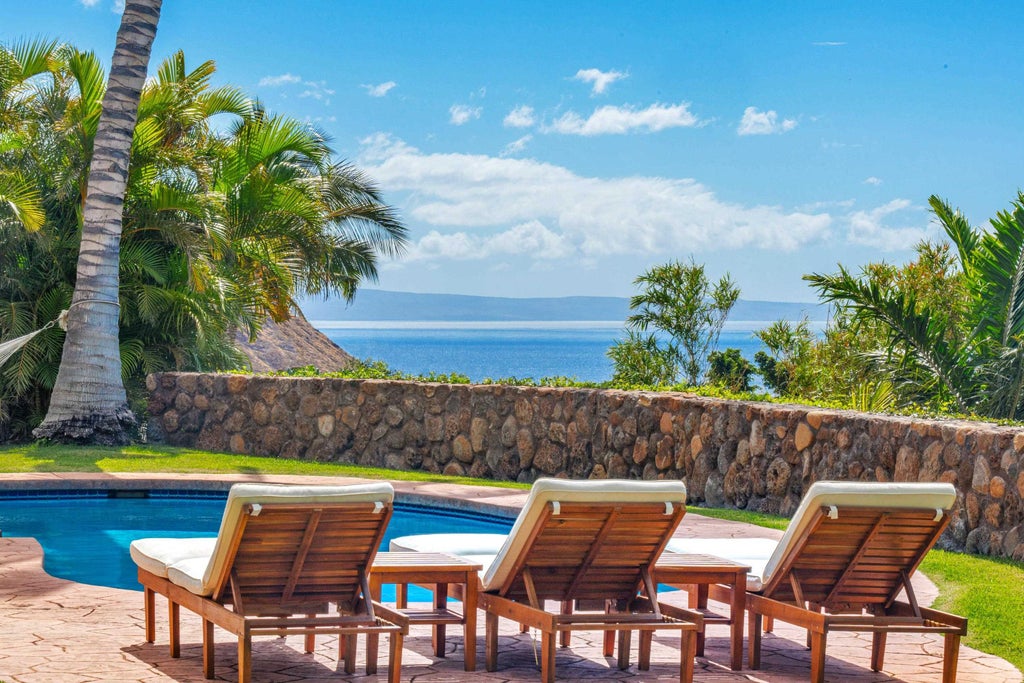 Nestled on the slopes of the breathtaking West Maui Mountains, this recently renovated home offers exceptional mountain and ocean views, with the island of Lana‘i creating a stunning backdrop. The open-concept design features a vaulted great room that highlights these incredible vistas, turning every moment into a scenic masterpiece. With 10-foot ceilings, 8-foot wood doors, and rich trim throughout, the home’s craftsmanship exudes luxurious charm. The primary ensuite bedroom seamlessly connects to a private outdoor shower, offering a serene way to enjoy nature. Step outside to unwind in the pool and spa, or relax on the inviting covered lanais, where you can whale watch, enjoy year-round sunsets, and savor the captivating mountain and ocean views. Lush tropical landscaping surrounds the home, to include mango, banana, citrus, and coconut trees, creating a private retreat. Located just minutes from the sparkling ocean, this home is ideally situated near renowned surf spots, picturesque walking trails, and family-friendly Launiupoko Beach Park, just down the hill, where surfing, swimming, and stand-up paddling await. Living in Launiupoko is more than owning a home—it’s a lifestyle that celebrates outdoor adventure and the natural beauty of Maui. This furnished, move-in-ready home is the perfect gateway to the island lifestyle in one of Maui’s most desirable neighborhoods. This is Unit B of a 2-Unit agricultural CPR and situated on .5 acres.