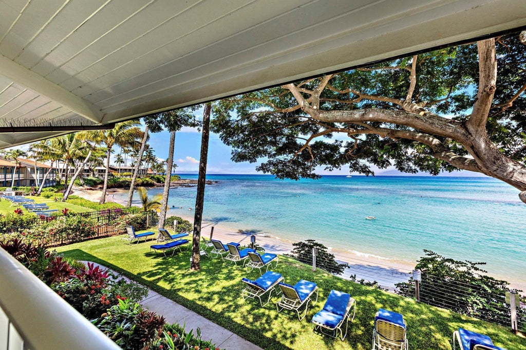 Spectacular Beachfront Location on Maui’s Napili Bay. This beautifully renovated one-bedroom, second-floor condo at Napili Sunset has vaulted ceilings, Hawaiiana-inspired décor, and a spacious airy feeling for your new Maui home. From your private beachfront lanai, savor breathtaking West Maui sunsets, spot winter humpback whales, or unwind with an evening drink. Below, a private lawn with chaise lounges and a BBQ area leads directly to the sandy beach. Enjoy easy access to renowned dining options like the Sea House Restaurant at Napili Kai or morning delights at The Gazebo at Napili Shores. A short walk takes you to Kapalua, home to Merriman’s Restaurant, the Montage resort, two championship golf courses, and boutique shopping. Napili Sunset is self-managed by the Owners’ Vacation Pool, with on-site support to address your needs. The well-maintained property boasts lush tropical landscaping, making it a true beachside paradise perfect for relaxing and recharging.