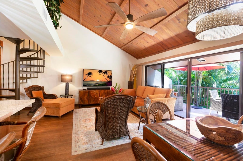 Stunning 2-Bedroom Condo at Koa Resort. Welcome to your Maui dream home, perfectly situated directly across from the tranquil Kalepolepo Beach in North Kihei. Fully remodeled 2-bedroom, 2-bathroom condo in the coveted Koa Resort is an exceptional opportunity for both island living and vacation rental income. This property is equally suited for personal use or as an income-generating investment. Excellent rental performance with rental history and revenue proformas available. Unmatched Interior Upgrades - Step inside this spacious second-floor unit, offering 1,066 square feet of living space, vaulted Koa wood ceilings, and a private lanai. The thoughtfully designed floor plan includes a lofted second bedroom that enhances the open, airy feel. Every inch of this condo has been upgraded to ensure modern comfort and style. The brand-new kitchen is a chef’s delight, featuring quartz countertops, a Kraus sink and faucet, and stainless steel appliances. Highlights include a Samsung Smart Electric Range with an Air Fryer, a Smart Linear Dishwasher, a French Door Refrigerator, and a Whirlpool Wine Cooler. The bathrooms are equally impressive, showcasing custom glass enclosures and luxury finishes. Comfort is at the forefront with a Daikin Central Air Conditioning system controlled by a smart thermostat and high-quality luxury vinyl tile (LVT) flooring with soundproof underlayment. Additional upgrades include a Rheem On-Demand Hot Water Heater, a Rheem Water Softener System, and a water purification system in the kitchen. New lighting, including dimmers throughout, and ultra-quiet fans in the bathrooms enhance the ambiance. Solid wood louvered doors and lit closets are practical yet elegant touches. State-of-the-Art Entertainment - This condo is equipped with premium technology to elevate your living experience. A new LG 65” 4K UHD OLED TV, paired with a Sonos Arc Dolby Atmos Soundbar and Roku device, creates the ultimate home entertainment setup. The private lanai features new outdoor furniture, perfect for unwinding after a day at the beach or exploring the island. Resort-Style Living - Nestled on 5.6 acres of lush tropical landscaping, Koa Resort offers unparalleled amenities. Enjoy the heated pool, spa, tennis courts, shuffleboard, and a barbecue pavilion, all designed to complement your island lifestyle. With only 54 units in the complex, you’ll appreciate the privacy and tranquility this community provides. Open parking and pet-friendly policies add to the convenience. Perfect Location - Located in North Kihei, this condo offers easy access to the best of Maui. Stroll across the street to Kalepolepo Beach for a peaceful sunset or explore nearby shopping, dining, and outdoor activities. Whether you’re looking for a primary residence, a second home, or a high-performing vacation rental, this property delivers. Additional Features - Modern Forms 70” Blade Fan in the living room. Brand-new smoke, fire, and gas alarms for peace of mind. Samsung Washer with Steam and Dryer with Multi-Steam Technology. High-quality furnishings and thoughtful design throughout Don’t Miss This Opportunity. This beautifully upgraded condo at Koa Resort is a rare gem offering a blend of luxury, convenience, and island charm. Whether you're seeking a personal retreat or a lucrative investment, this property is a piece of Maui paradise waiting for you. Schedule your showing today and experience the magic of island living!