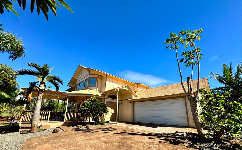 This lovely home is privately situated on Kaiaka Rd on the closest lot to Kepuhi Beach! It boasts an open concept design with 20 ft. high custom ceilings and great spaces. The modern kitchen has a cooking island with seating, granite countertops and newer appliances. On the first floor you'll find 2 bedrooms and 1 bath and deluxe master bedroom with en suite on the second floor. Conveniently designed with seperate entrances on both levels with many lanais/decks to enjoy. 2 A/C units replaced Aug. 2023 as well as solar water heater. Nice 2 car garage with seperate laundy and full bath. Mature landscaping with irrigation and custom fire pit. Irrigation replacement Dec 2024. Absolute beach living!