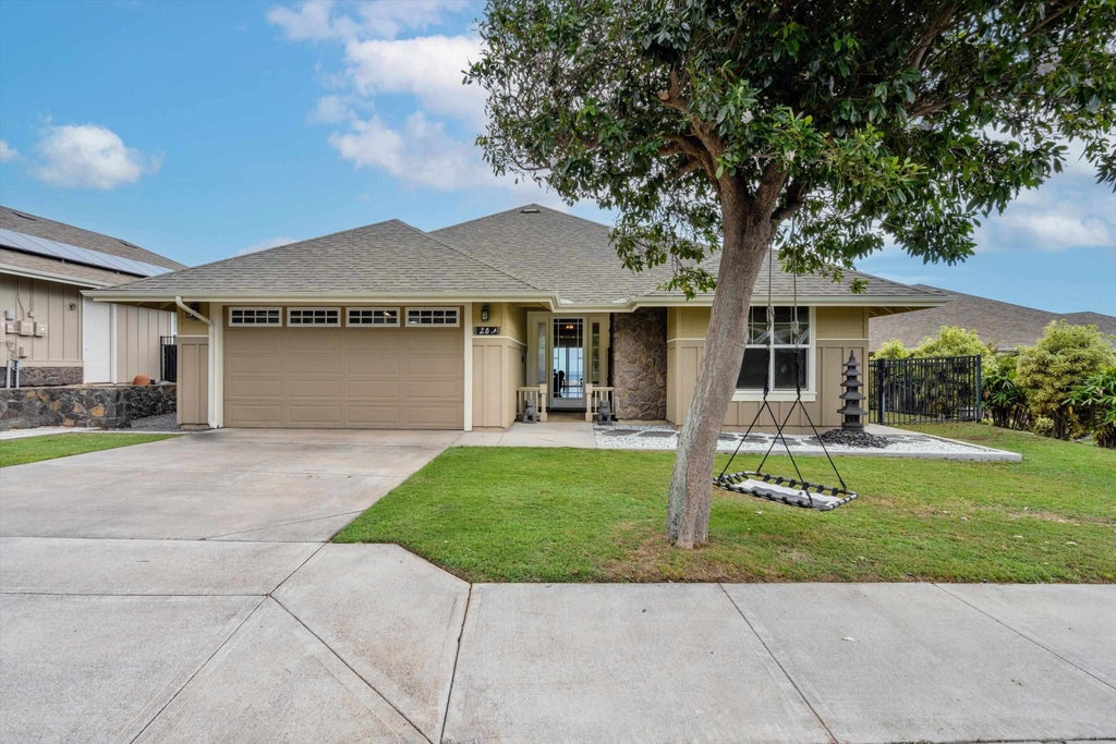 FABULOUS VIEWS from this well designed SINGLE STORY HOME. Enjoy the sun rises and the moon rises and the OCEAN VIEWS of the North Shore of Maui. View the airplanes and cruise ships coming into Maui. At night enjoy the city lights and the stars and also the fireworks on New Years Eve. Relax in the comfort of your home cooled by the split system air conditioning. The home has an owned photo voltaic system with 18 panels and a two paneled solar water heating system to keep your energy costs down. The home had been remodeled to include an enlarged kitchen and more storage cabinets to facilitate the enjoyment of the home. The family room was also enlarged and included the addition of curly wood laminate flooring. The laundry room is conveniently located inside the home for ease of access. The garage is 612 sq. ft. and can park 3 cars if you desire or make a work are out of the third stall. The property is located on a peaceful street and has a fully fenced yard to enjoy. A small community park is located down the street for your use. LOCATION, LOCATION, LOCATION can not be topped as your located near schools, shopping, health care facilities, Maui Arts and Cultural Center, University of Hawaii Maui College, the OGG airport and of course the beaches and ocean. The climate here is ideal for your activities and living. Enjoy the Monarch Butterflies. In Escrow, taking back up offers.