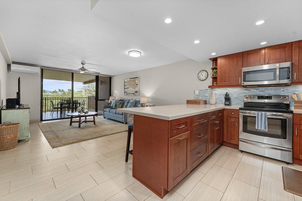 This South Maui condo, located across the street from Kamaole Beach Park III and nearby to some of Maui’s most beautiful beaches, gives you direct access to sun, surf and sand. Featuring an open-concept kitchen and living room that seamlessly flow into the spacious covered lanai, it’s ideal for entertaining guests or simply enjoying a quiet evening outdoors with a sunset view. A complete remodel in 2018 included dual zoned split system A/C, quartzite counters, cabinetry, stainless kitchen appliances and tile floors throughout. Onsite amenities include a pool, hot tub, kiddie pool, fitness center, 4 tennis courts and SUP storage. Roofing and plumbing renovations have been completed for this building and the assessments have been paid by the Seller.