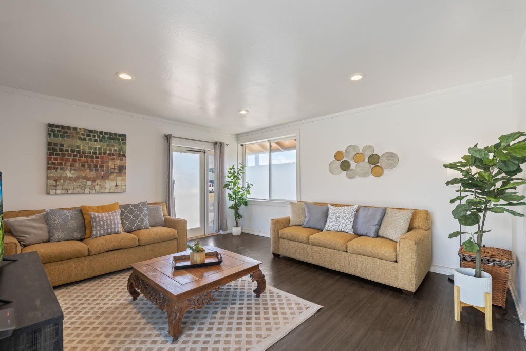 52 Aiai Street is a remodeled, 3 bedroom, 2 bathroom main home and a 2 bedroom, 1 bathroom detached cottage. The main house offers a flexible floor plan that could function as separate living spaces. In the main house, open-concept living and dining areas are ideal for gathering and entertaining. Large windows and modern lighting feel bright and airy, while durable, dark ash flooring offers a stylish contrast. Dual kitchens in the main house offer separate spaces for meal preparation and feature granite countertops, elegant backsplashes, stainless steel appliances and plenty of storage space. Enjoy relaxed dining around the breakfast islands. The main house offers 3 spacious bedrooms and 2 bathrooms with a sleek design, tiled walk-in showers and durable finishes. The 500 square foot detached cottage flows cohesively with the main house design. The cottage includes a cozy front porch, its own yard and storage. Enjoy the outdoor amenities with 3 storage sheds on property, a wide driveway with ample parking space and multiple yards. This property is in a convenient location across the street from the neighborhood park and close to the airport, shopping and dining.
