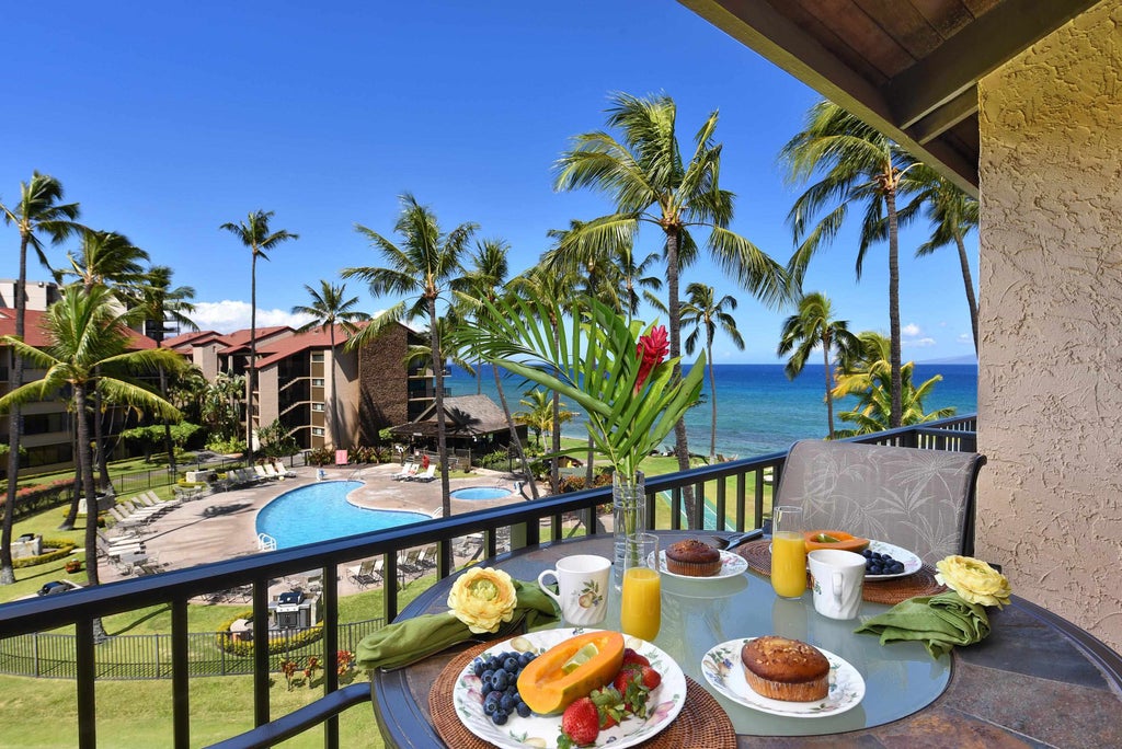 Papakea G407 is the perfect place for a family vacation or a romantic escape. From your fourth-floor lanai, you have 180-degree, beautiful views of the ocean, shuffleboard court, pool/Jacuzzi/barbecue area, putting green, tropical gardens, koi ponds, and the West Maui Mountains. Top floor units feature vaulted cathedral ceilings, which give an open, airy and spacious feeling. The wall of mirrors reflects the ocean view and the outside beauty of Papakea. Upgrades Include: AC has 3 Fujitsu, tri-zone, whisper-quiet units with wireless remotes to provide AC throughout the condo. Thermopane six-panel lanai door which provides a 10-foot wide opening out onto our lanai. Primary BR has sliding Thermopane windows to provide a quiet sleeping experience. New 240-volt filtration system added to our AC that kills all viruses, including Covid 19. Features include: Bamboo shades throughout, fully equipped kitchen with granite countertops. Lower kitchen cabinets have pull-out shelves for easy reach and storage. Bosch washer and dryer. The primary bath has a glass-block shower for two and a tropical rain shower. The loft has a new, full-sized bathroom with a pedestal sink, shower with a river-rock floor, and plenty of shelves for all your needs. The loft has a king size bed and two twin beds that can be configured into a second king size bed. Papakea has 13 oceanfront acres of beautiful tropical landscaping, vast lawns, peaceful lagoons, and bridges. The resort features two pools, two Jacuzzis, two putting greens, two shuffleboard courts, and tennis/pickleball courts on the property. Coconut palms outline your views of the Pacific and the nearby islands of Lana'i and Moloka'i. The sounds of rustling palms, tropical birds, and gentle surf relax and comfort you. Papakea lobby features Blue Hawaiian Activities with fun filled family adventures including; Helicopter Tour, Sunset Luau, Sunset Cruise, Surf Lesson, Zipline Adventures, Rainforest Waterfall Hike, Haleakala Tour, Bike Down the Volcano, AVT Tour, Fishing Adventures, Parasail, Whale Watching, Jet Ski, Catamaran Snorkeling and Hana Guided Tours.