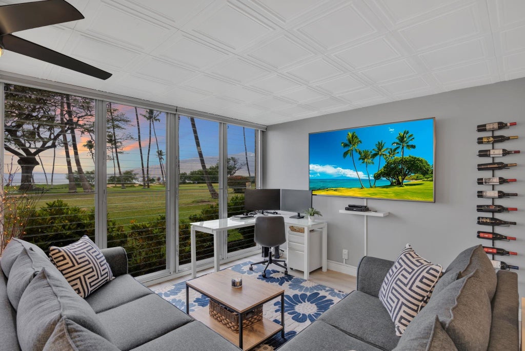 Welcome to paradise at 1002 S. Kihei Rd, Unit 113, Kihei. Beachfront unit with one of only 9 direct ocean views. This delightful, ground-floor gem in the Waipuilani community offers two spacious bedrooms and two modern bathrooms in 954 square feet of living area. Enjoy new floor-to-ceiling windows and a double-paned sliding glass door opening directly to oceanfront living. Windows include custom, remote controlled blinds; watch whales breach the ocean’s surface and enjoy perfect ocean sunsets with your favorite person. Traverse cool, cohesive LVP flooring from Bamboo Maui in this tastefully updated home. Dine in the beachfront kitchen that includes all new Whirlpool stainless steel appliances installed just prior to listing. The unit has a surprising amount of storage for all of your needs. Upon entry, a large closet is the ideal location for beach chairs, snorkel gear and more. Custom closet shelving in the primary suite lets you organize your Aloha shirts, board shorts, and “slippahs”. In unit, full-size washer and dryer make everyday chores easy. Raise a glass at your very own custom-designed bar, complete with dual beverage refrigerators. Relax at your community pool or sit at the water’s edge and visit with your friendly island neighbors. For athletic fun, pickleball and tennis courts are steps from your back door. This thoughtfully upgraded turnkey home invite you to embrace the relaxed island lifestyle that makes each day feel like a vacation in beautiful Kihei. Whether you enjoy this as your primary residence, your second home, or operate it as a rental investment, Unit 113 offers a great place to make your Maui home.