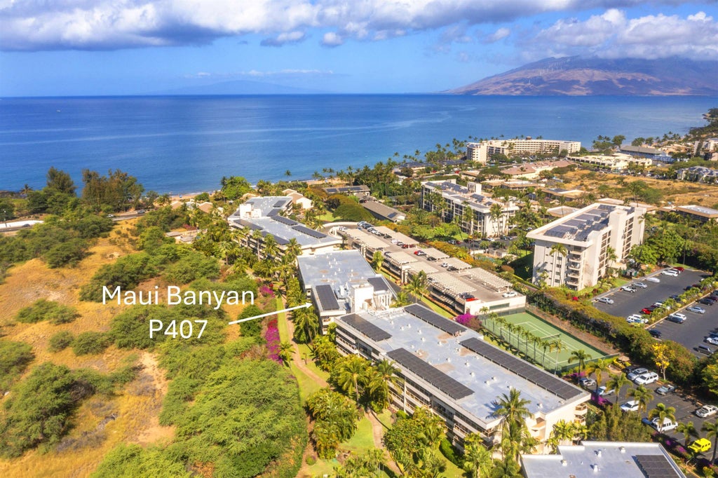 Maui Banyan P407 has a fantastic top-floor location in the middle of the complex and offers the best of both worlds - spectacular mountain vistas and sweeping ocean views. Enjoy the tranquility and natural beauty of the surroundings while being just minutes away from pristine beaches, vibrant shopping, and fabulous dining options. Whether you're relaxing on the lanai or exploring the local area, this is a perfect place to experience the ultimate Maui lifestyle. Don't miss your chance to own this exceptional Hotel-zoned property in one of Kihei's most sought-after areas! P407 has a lock-off layout with 2 entrances creating the possibility of 2 rentals (a 1-bedroom and a studio or as a full two-bedroom). Maui Banyan has 2 pools, 2 hot tubs, several BBQ's and a tennis court.