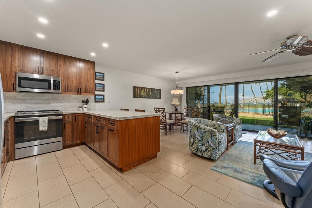 Enter this beach communities beautifully renovated condo steps from the white sands of Sugar Beach. Ma'alaea Surf Resort is a hidden gem in North Kihei that has a loyal following and is always in high demand! This fantastic ground floor unit has been completely updated and with all new appliances too. From the expansive living room to the beautifully remodeled kitchen with stainless steel appliance, granite counter tops and much more! Tennis courts, pickleball, basketball, shuttle board, two pools all steps from six miles of pristine sand for long beach walks. There is no property like this, it truly is a gem. Ma'alaea Surf is Hotel Zoned and very popular with many families vacationing there year after year. Call your favorite realtor for a showing today!