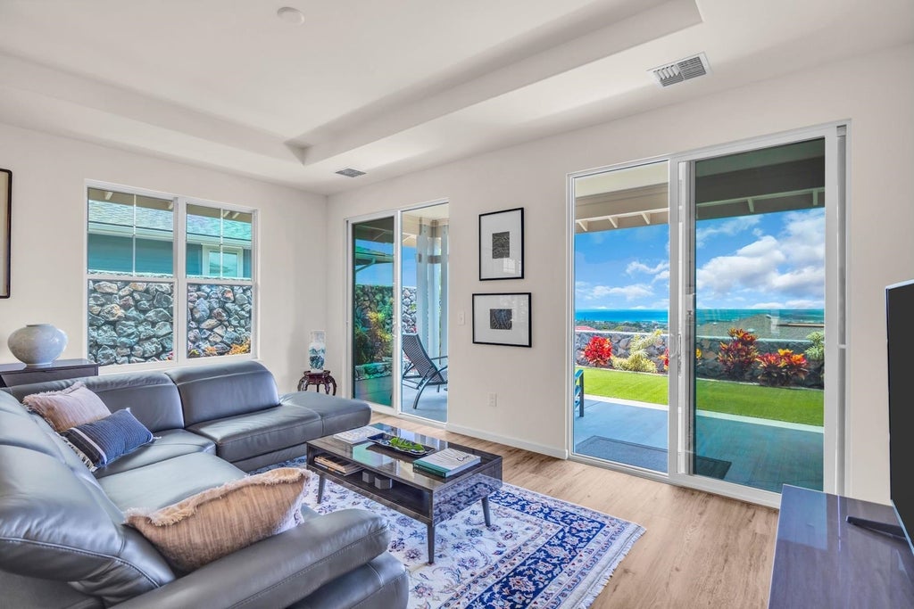 Introducing the jewel of the neighborhood in the highly desirable Anuhea at Kehalani – a front row pristine 3-bedroom, 2-bath single-family home radiates quality and care. This immaculate single-level residence boasts an impressive array of both developer upgrades and owner enhancements, showcasing that no detail was overlooked. With spectacular ocean and mountain views, you’ll enjoy paradise inside and out. The home features custom touches throughout: wide plank luxury vinyl flooring, Corian Quartz leathered countertops, GE slate gray appliances, Kohler porcelain sinks, and an outdoor tiled spa shower perfect for unwinding. The tropical landscaped yard is thoughtfully designed for ease of maintenance, with full drip and spray irrigation. Custom Blue Rock walls with columns and planters provide ultimate privacy. Huber Optic ceramic window tinting on all the dual-glazed windows for added UV protection and comfort. Enjoy year-round climate control with a Rheem 5-ton central AC system with AprilAire purifier, custom ducts and vents, and charge your electric vehicle with a built-in EV outlet in the garage. Set in a new, palm tree-lined neighborhood with multiple parks, bike and walking paths and close proximity to shopping and schools, this meticulously loved home is a rare opportunity that blends luxury, convenience, and island living at its finest. Seller is a licensed Real Estate Salesperson in the State of Hawaii.