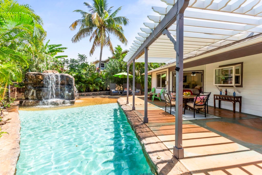 Where Island Dreams Take Root — Keala Hills, South Maui Step into your own private oasis in sought-after Keala Hills, where the centerpiece of this single-level South Maui retreat is a shimmering pool with a soothing waterfall, surrounded by lush tropical landscaping and birdsong. Whether you’re starting the day with a sunrise swim, enjoying a barefoot afternoon lounging in the sun, or winding down beneath the stars, this space offers pure island serenity from the moment you arrive. Tucked at the end of a quiet cul-de-sac, this 3-bedroom, 2-bath home welcomes you with an open, light-filled layout where natural sunlight flows through gentle archways and warm finishes. French doors from both the family room and the primary suite lead directly to your outdoor sanctuary, blending indoor and outdoor living with ease. This home is not only peaceful, but practical—with photovoltaic solar panels to power your central A/C, keeping you cool and energy-efficient. The fully fenced yard provides privacy, security, and space to play, along with the added bonus of room to build a detached cottage (ohana) for guests or rental potential. Ideally located just minutes from Kalama Beach Park, Cove Park, shopping, dining, and the heart of Kihei, this home offers the perfect balance of convenience and calm. More than a home, this is a lifestyle—a gentle invitation to live the Maui dream, one golden, sun-drenched moment at a time.