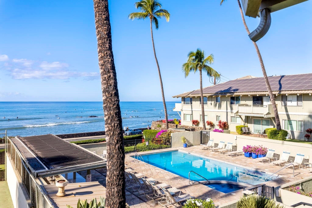 This stunning 1-bedroom, 1-bath condo at Shores of Maui offers one of the best views on the island! Watch surfers catch waves all day, with a direct view of the cove from the extra-large, private lanai. Beautifully remodeled throughout. Gorgeous travertine tile, and a spacious attic for extra storage. Currently vacation rentable, Shores of Maui also features a pool and tennis/pickelball courts, making this truly a special place to call home.
