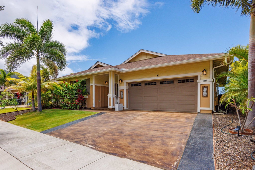 Welcome to 235 Kilioopu Street, a stunning 3-bedroom, 2-bathroom single-level home nestled in the highly sought-after Highlands at Kehalani community in Wailuku. Built in 2019 and meticulously maintained, this residence offers 1,542 Sq ft of modern interior space on a beautifully landscaped 5,672 Sq ft lot—perfectly oriented to capture sweeping North Shore ocean views and cool mountain breezes. Step inside to discover an open-concept floor plan filled with natural light and tasteful upgrades throughout. The kitchen features all-new stainless-steel appliances, sleek cabinetry, and ample counter space—ideal for everyday living and entertaining. Each bedroom is equipped with its own split-system air conditioning unit for customized comfort. The spacious primary suite includes a walk-in closet and en suite bathroom. Outside, lush tropical landscaping surrounds the home, offering both beauty and privacy. A covered lanai provides the perfect setting to enjoy morning coffee with a view or relax at sunset. Located in one of Central Maui’s most desirable master-planned communities, residents of Highlands at Kehalani enjoy access to pedestrian paths, parks, and close proximity to schools.