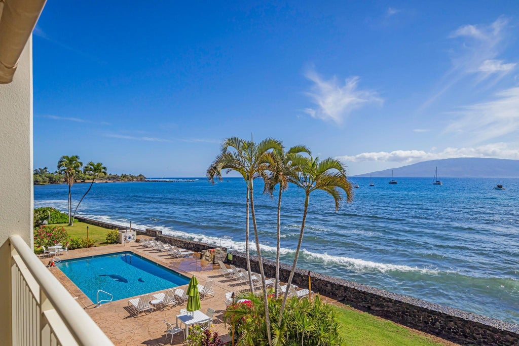 Enjoy unobstructed ocean views and the best of island living from this exceptional oceanfront condo at Lahaina Roads. Ideally positioned along the Lahaina coastline, this unit offers panoramic Island views. Glass sliders open to a private lanai, where you can relax to the sound of waves, sip your morning coffee, or enjoy evening sunsets over the water. Lahaina Roads offers a well-maintained oceanfront lawn and a sparkling swimming pool just a few feet away from the shoreline, all within a peaceful, tropical setting. Pool side BBQ grills and outside seating add to the experience of being on the ocean front. Some photos show virtual staging.This complex is A2 Apartment zoned Buyer to do their own due diligence.