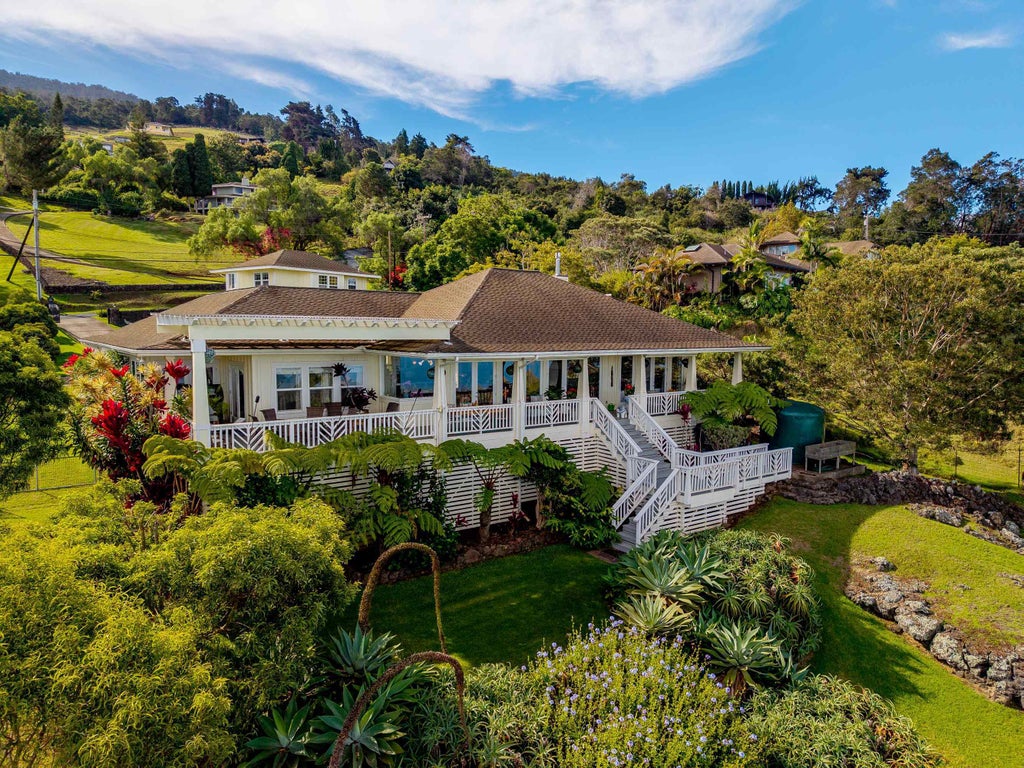 Experience island elegance in this beautiful Kama'aina home and cottage, Kula's finest offering on the slopes of Haleakala. This classic Hawaiian architecture offers COAST to COAST VIEWS on one acre of perfection in Keokea. Sit above the valley in a home shaped by light and landscape, lush established gardens and stunning sunsets over West Maui and Lana'i. Expansive glass windows and a generous lanai frame dramatic VIEWS of our islands over rolling pastures and a mature landscape of native koa and Hawaiian tree ferns. This elegant Kula retreat offers cool island air and is perfect for quiet reflection and effortless entertaining under the stars. Included in all of this home's beauty you'll surely appreciate the Central Heating, Central Vacuum, a sophisticated Water Filtration System, 18 Photo Voltaic Panels and Solar Hot Water, a Honda EU7000 Generator and 2500 Gallon Water Storage Tank. Classic touches include acacia wood floors, soapstone counters and a dual gas fireplace serving both living room and bedroom. This gardener's delight includes a variety of avocados, peach, figs, nectarine, pear, Meyer lemons, limes, oranges, tangerines, pomegranate, apple bananas, tangelos, kabocha and apples! You are invited to a home in a private and serene setting. Come and enjoy long mornings of coffee and tea and evenings of golden light.