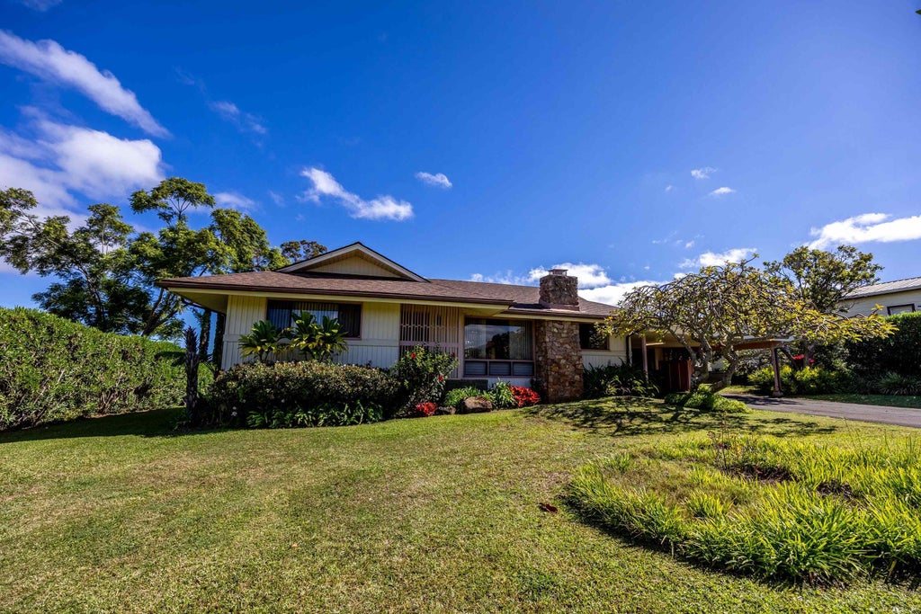 Step into timeless charm with this classic 1960s ranch-style home, offering single-level living in a highly sought-after location, Kula Kai! Featuring iconic mid-century details like rich redwood walls, a stone fireplace and clean lines, this home blends vintage character with everyday comfort. While the home retains many of its original features, it's ready for updates and personal touches! The kitchen and primary bathroom feature exquisite koa wood cabinetry, a rare find. The other bath includes a traditional tiled Japanese style furo tub. The primary suite is generously sized with lots of natural light and high open beam ceilings. Tucked beside a quiet gulch and VIEWS beyond Haleakala Ranch, you'll find a spacious backyard, perfect for entertaining or relaxing as well as the most magnificent, mature avocado tree that bears glorious fruit! Bring your vision and creativity- this is a rare opportunity to reimagine a special home in a great location!