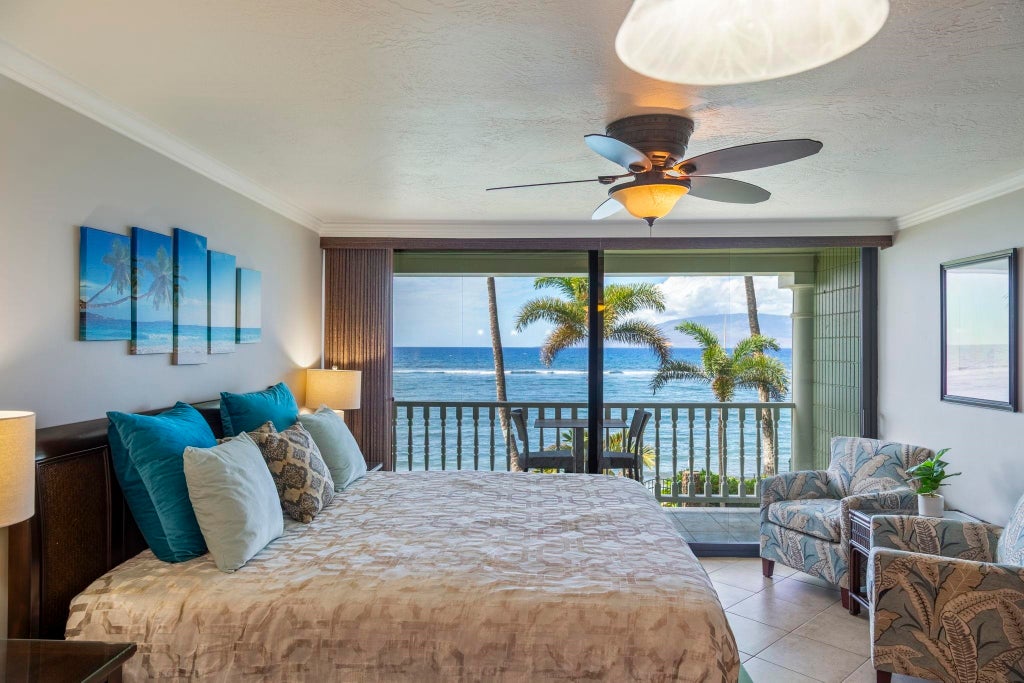 Discover the timeless charm of Lahaina Shores, the only Hotel Zoned oceanfront condominium in historic Lahaina Town offering direct access to the beach. Unit 213 is ideally located on the second floor, providing direct ocean views from the living area, kitchen, and private lanai. The interior has been tastefully upgraded and features many new furnishings and appliances, including a new stove, refrigerator, mattress, a new dining table with two chairs and two side chairs. Offered turnkey, this studio is ready for immediate personal enjoyment or use as a Short-Term Rental investment. Lahaina Shores officially reopened on July 1, 2025, following a comprehensive revitalization that included refreshed landscaping, new hallway carpeting, and interior updates. Owning at Lahaina Shores is more than just beachfront living—it’s a chance to be part of Lahaina’s ongoing renewal and vibrant future.