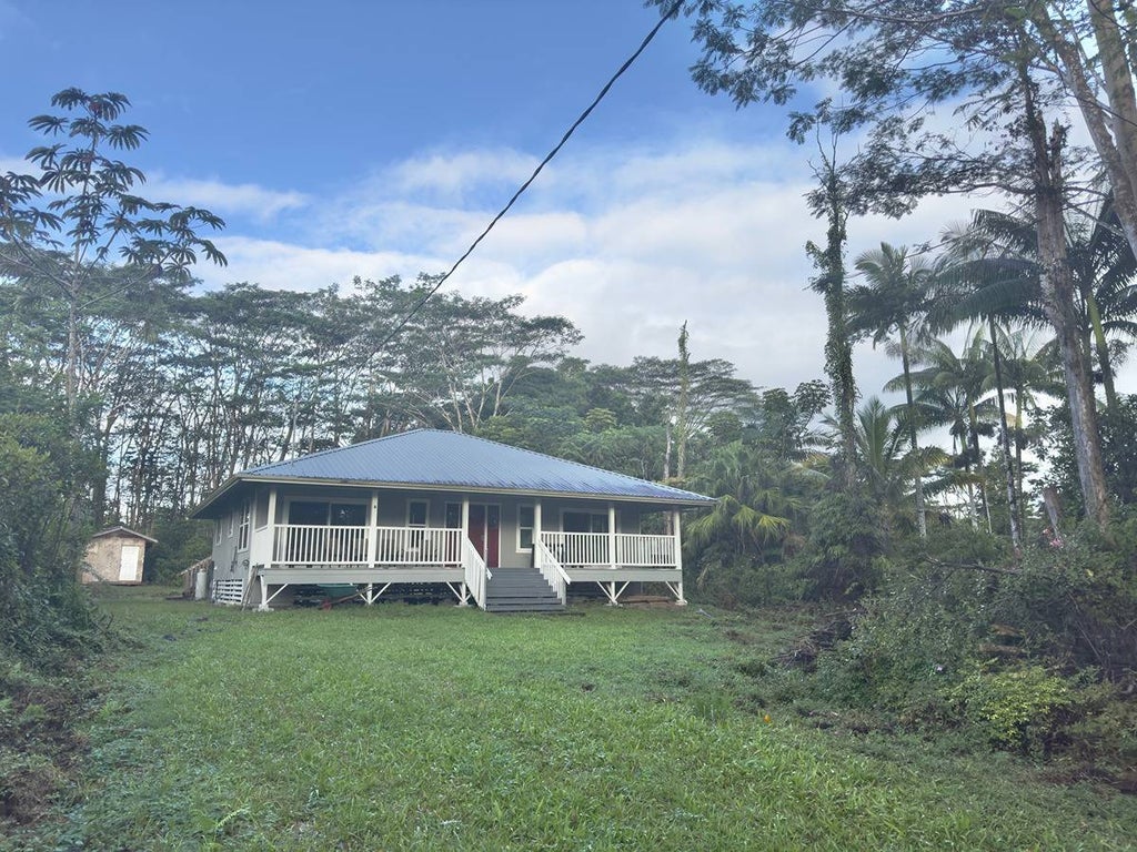 This 2 bedroom, 2 bath never lived in 1,408sf home was started in 2018 and all permits completed on 1/4,6/22. All new Kenmore dishwasher, elite Fridge, gas with convection oven stove, above range microwave, washer and dryer series 200; Koa slab island, new ground foss water pump, on demand water tank, 10,000 gal catchment tank with new cover, on cesspool, there's 3 ceiling fans, 4 smoke detectors, laminate wood flooring, 352' front lanai, 12' rear back steps, 10x12 tool shed. Prequalified buyers only and seller is willing to review all reasonable offers. 13-3360 Kupono Street is in Lava Zone 1, Flood Zone x and at approximately 727 ft elevation.