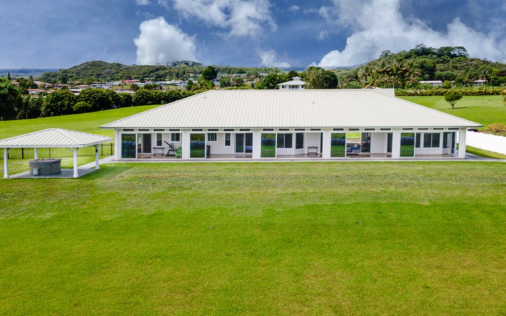 This impeccable 3-bedroom, 3.5-bath home features a split floor plan with an elegant primary suite separated from the additional bedroom suites by an open-plan great room that seamlessly flows out to the lanai. Renovations include natural stone flooring throughout, a new kitchen with a gas range, quartz countertops, custom cabinetry, and high-end appliances. The previous garage has been converted into a spacious rec room or home gym. Additional upgrades include new Hardie panel siding, standing seam metal roof, high-end fixtures throughout, and a solar hot water heater. Each bedroom suite features a walk-in closet, and a luxurious bathroom. The lanai, with triple-track doors, expands the living area and captures stunning ocean views for classic Hawaiian indoor-outdoor entertaining.