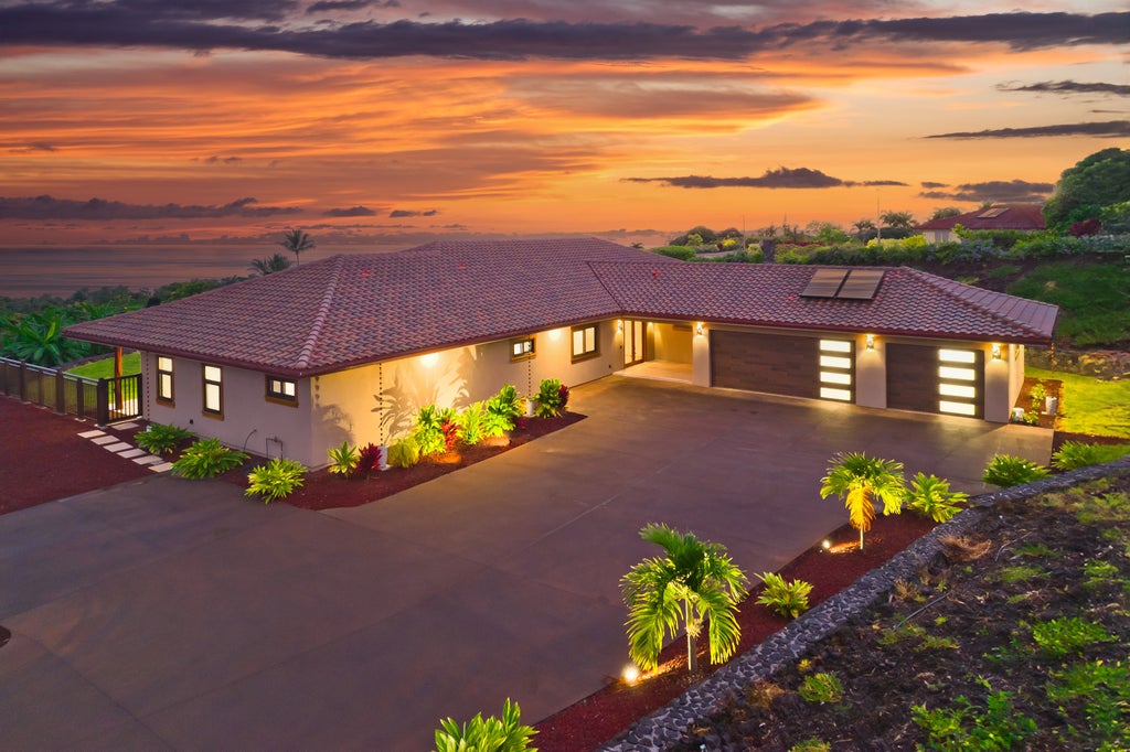 Brand new exquisitely designed custom built home, at the end of a dead end street, in the beautiful gated community of Kona Hills located in Kailua Kona. The home offers three oversized en-suite bedrooms with walk in closet, each with their own lanai, all have sweeping ocean views. The home also includes a fourth room that can be used as an additional bedroom, or home office. This home gives you the feel of living in the country, while driving a short distance to downtown Kona. Some furniture is available for purchase.