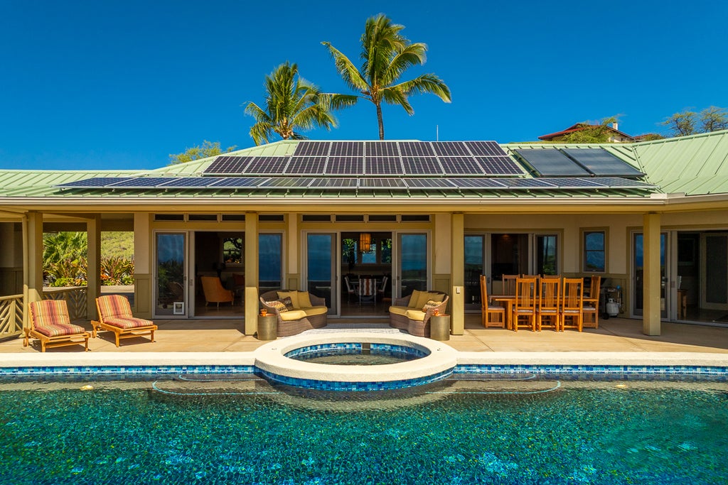 With mesmerizing shades of blue surrounding the property—clear skies, the reflection of the swimming pool, and the infinite expanse of the Pacific Ocean—this home is the epitome of island living. The open-air floor plan seamlessly blends indoor and outdoor spaces, offering panoramic mountain and ocean views, along with unforgettable sunsets.