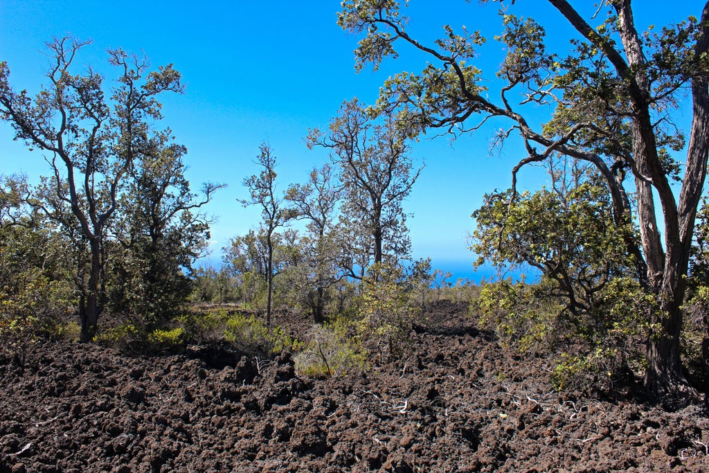 This property is vacant land with 'a'a lava, ferns, other native plants & medium to large 'ōhi'a trees. Plenty of trees with big open spaces makes this particular lot easy to develop. There are views of the ocean through the trees during the day, from this beautiful, park-like setting. Amazing star gazing at night, dark enough to see the Milky Way! Warm days and cool nights. Overhead power is available via SSPP, or go off-grid with solar!