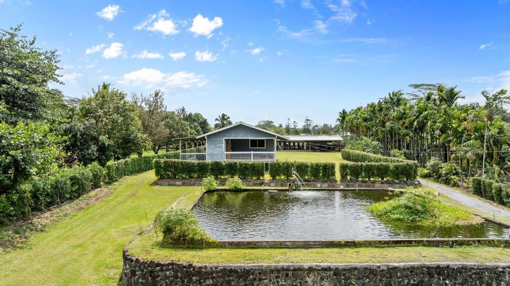Discover this hidden gem, a private retreat conveniently located off the main road. Nestled in just under an acre, this property boasts three beautiful tilapia ponds and endless potential. Matured Lychee trees. Fully covered garage space for yard equipment storage or entertaining. The home is waiting for someone to restore its charm and bring it back to life. Enjoy the rare benefit of county water, a sought-after feature in the area. With easy access to the main highway, this peaceful sanctuary offers both privacy and convenience. Don’t miss this unique opportunity to create your dream home in paradise!