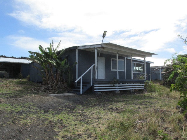 This 3 acre property consists of 4 buildings - the main house is 1B/1Ba with kitchen and living area (approx 800 sqft). Back building is a bedroom and additional bathroom (144 sqft) - very private. Seller was a hairdresser with a home salon so, front building has running water and outside bathroom (96 sqft). Can be used for art studio, home office - additional bedroom. Both home and extra bedroom have large lanais. The last building is a 4 bay carport which can be improved upon depending on what you require. All buildings are unpermitted. Lots of possibilities. Includes 2 catchment tanks - 2 solar electric systems - septic system - fencing and rock walls with gated entry from street. Large window in the living area allows great ocean views and you will never tire of watching the sunsets. Morning coffee or evening drinks can be enjoyed on the front lanais. Subject to annual road fees. Access info at ranchos-roads.org