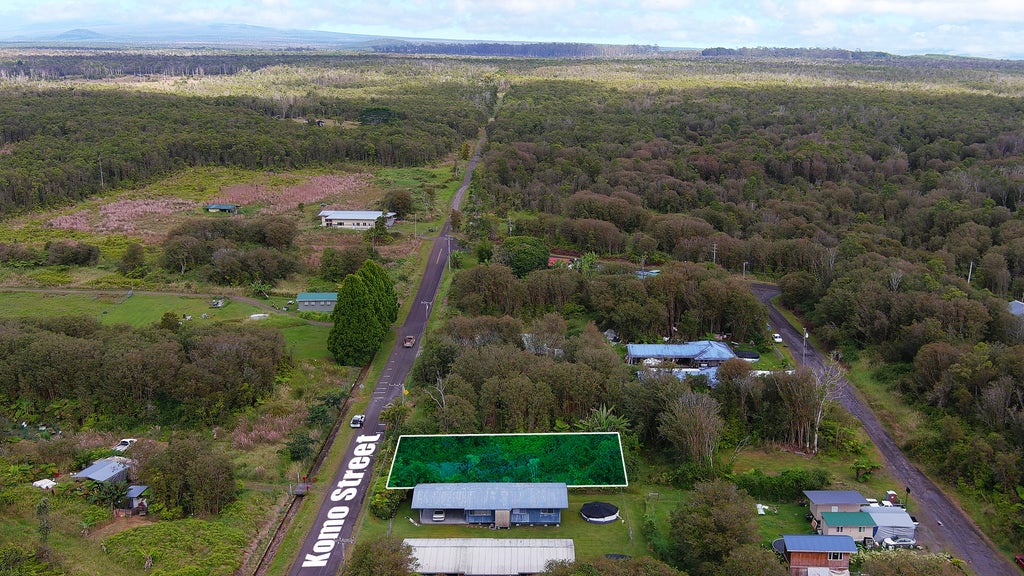 This previously cleared lot offers a grassy, lightly wooded setting on paved Komo Street with convenient highway access. Per HELCO regular electric service is available. Previously staked (no new staking/survey by seller). Best of all, the sale includes approved permits for a 3-bedroom, 2-bath home with a concrete slab foundation, saving you time and money so you can break ground right after closing.