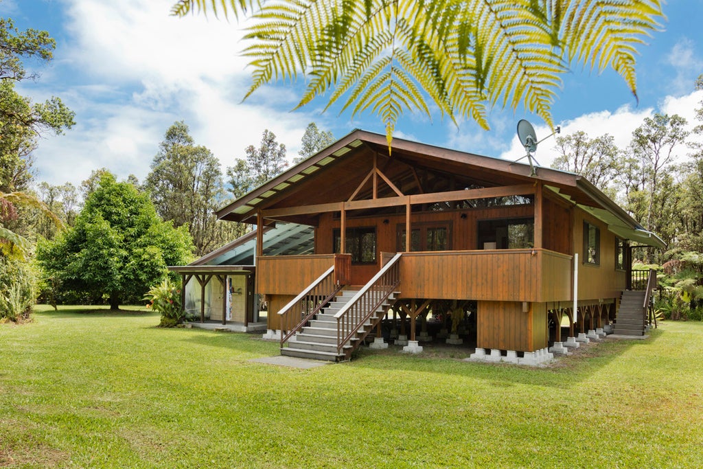 Discover your own private sanctuary just 30 minutes from Hilo and its stunning beach parks, only 20 minutes from the nearest shopping center, and 17 miles from Hawai'i Volcanoes National Park. This partially fenced 20-acre estate offers the peace and seclusion of a forest hideaway, paired with the comforts of modern living.
