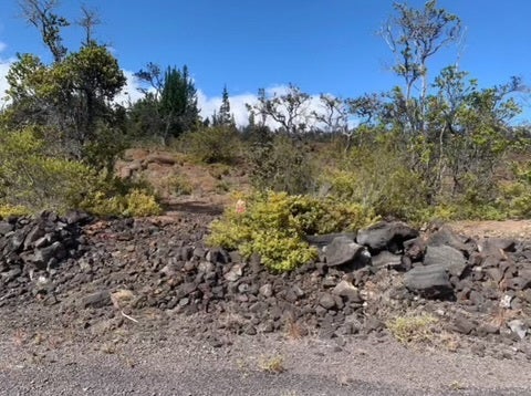 Gently sloping lot with beautiful ropey golden Pahoehoe lava formations, black and red cinder and great coastline and South Point Views and native trees and plants. Lot has been staked and all stakes are visible. Ready for your project. In the upper third of the subdivision