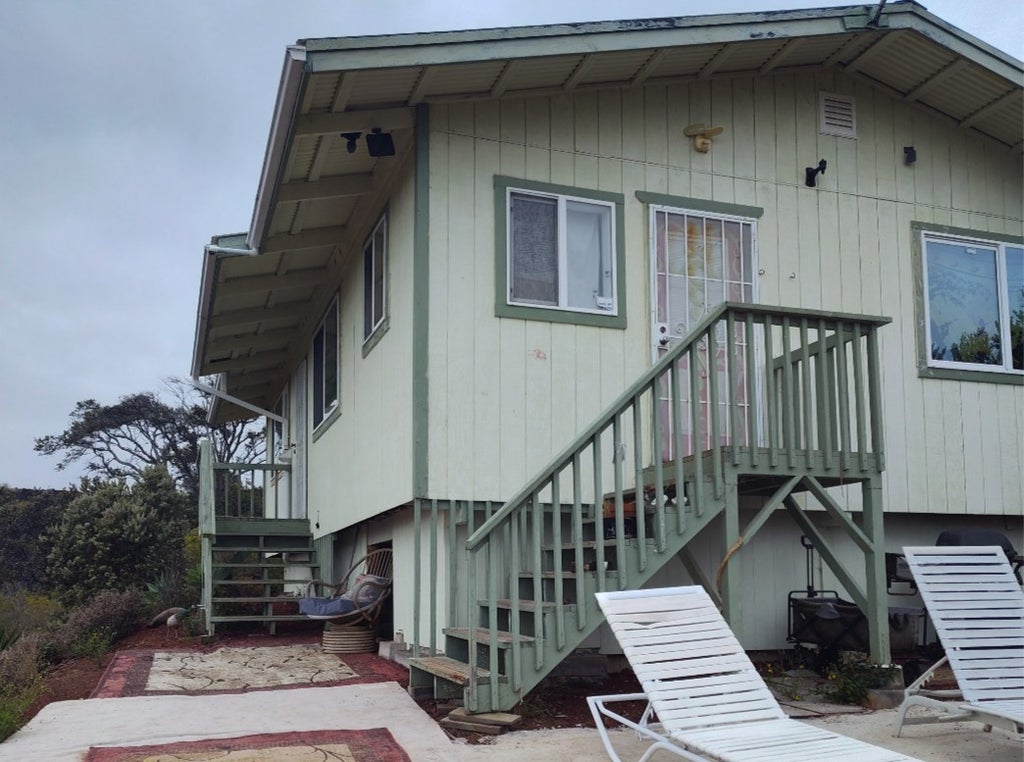 This unique property has a lot to offer. Higher elevation for cool nights and perfect days. This 2 bedroom 1 bath home was solidly built, but finished without permits. Home is being offered as-is, so may need a little TLC. The views are the assets - South Point and mountain views - you own special canyon view with native plants and birds. Property is a wide (122 x 356) one acre. Circle driveway with gates. The interior murals are unique and maybe you will be drawn to the colors and artistic forms. No appliances are included. A great value as close to county assessed value....Come see what Ocean View has to offer.