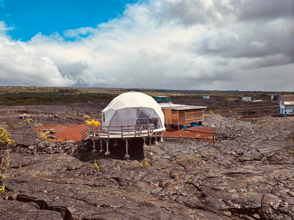 15,000 sq ft of Paradise! A unique combination of a Geodesic Dome, 40 foot Container and a wooden cabin structure creating the most fantastic living spaces at eclectic Kalapana Vacation Lots. Built upon 2 adjoining 7,500 sq ft lots 3-1-2-12-127 and 128.