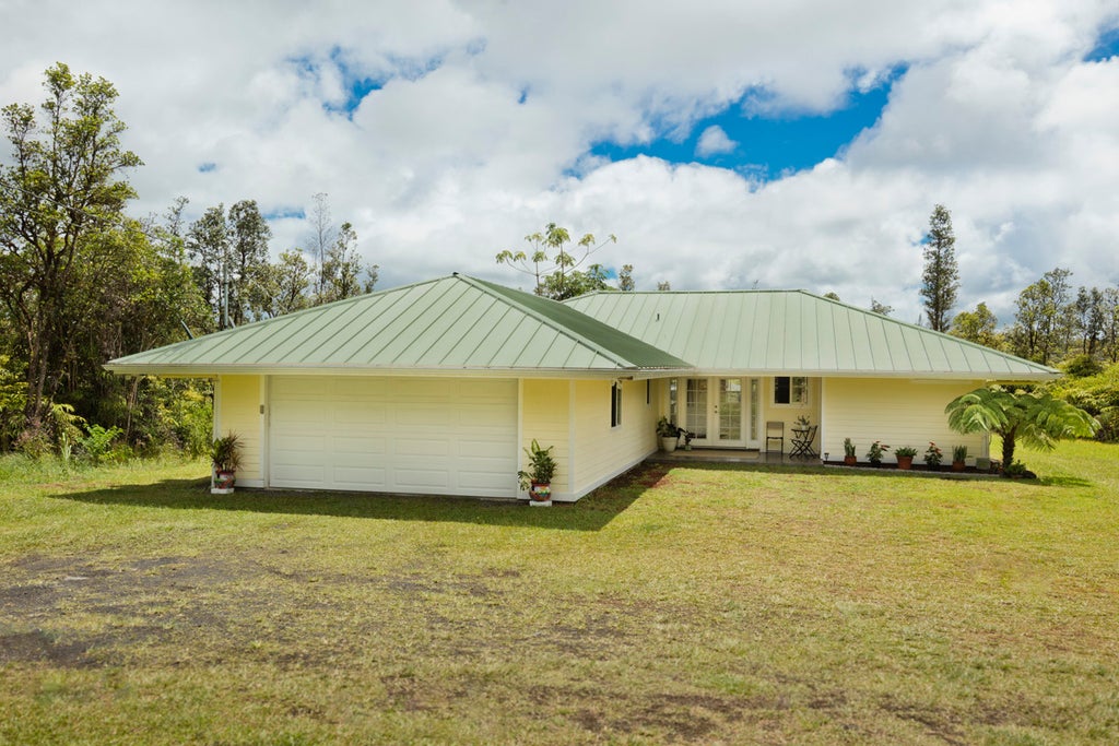 The primary suite, situated on the opposite end of the guest rooms, offers a sanctuary of comfort. Spacious bathroom, complete with double sinks and a walk-in closet. The custom bay windows add a touch of cozy elegance, while the vaulted ceiling creates an airy and spacious feel. Granite countertops and other high-end finishes complete the picture. French doors in both the front entry and dining room keep the home open and bright! This home is move-in ready. A two-car garage provides ample parking, and recent updates include a newly painted catchment tank and new ceiling fans in every room. This is more than a house; it's a home.